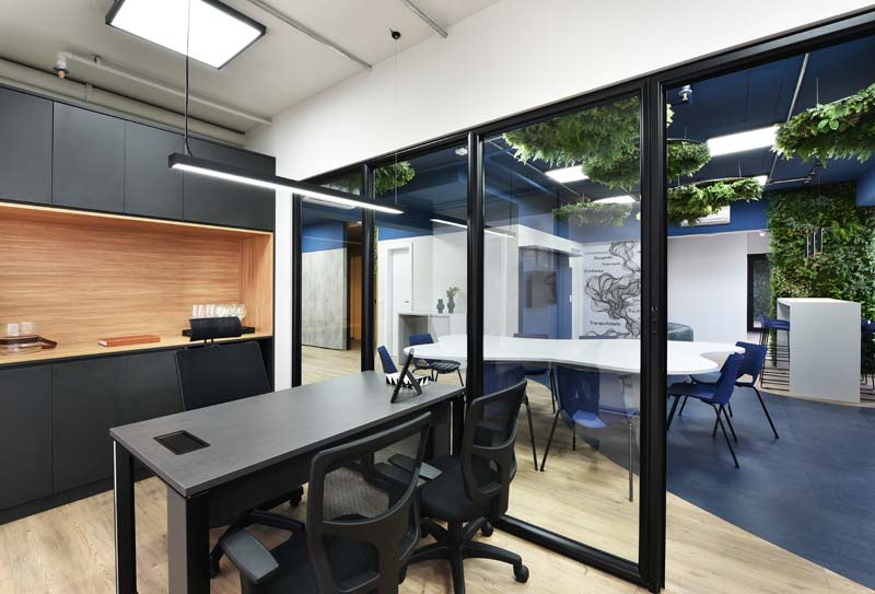 A arquitetura deste projeto não segue apenas um traçado funcional; ela conta histórias, desperta sensações e transforma a rotina em experiência. O ambiente corporativo foi pensado como um organismo vivo, onde materiais, cores e luz dialogam para criar um espaço de pertencimento e fluidez.